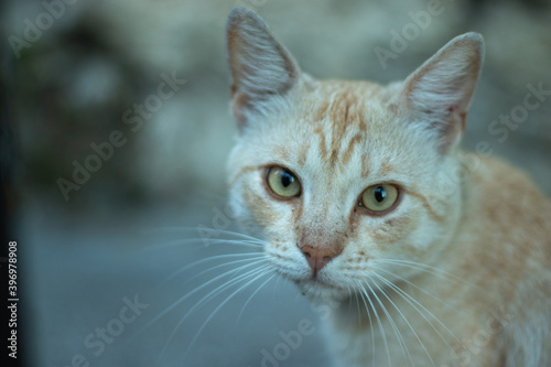 © Postmodern Studio, Obraz premium Cute ginger cat looking at the camera. Cat portrait with bokeh and copy space
