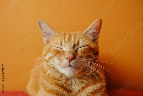 © Dima, Fototapeta premium Cute ginger cat on a vibrant yellow background. Studio shot. Generative AI