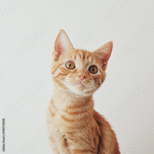 © Muadz, Obraz premium Cute ginger kitten, looking thoughtfully at camera. Soft light, close-up