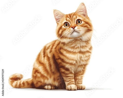 © Ruku, Obraz premium Cute ginger kitten sitting, looking up, isolated white background. Possible use pet adoption