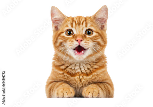 Obraz premium Cute ginger kitten with surprised expression isolated on transparent background