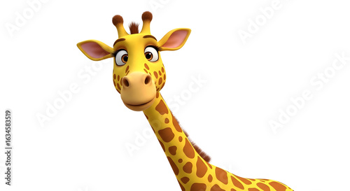 © MS Siregar, Fototapeta premium Cute Giraffe Cartoon with Spotted Yellow Fur Leaning Forward