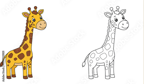 © Shahid, Fototapeta premium Cute Giraffe Coloring Page for children. Illustration of artwork