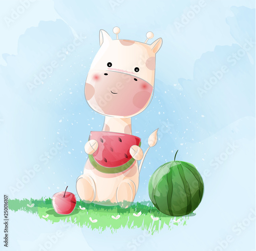 © artdee2554, Naklejka premium Cute giraffe watercolor style