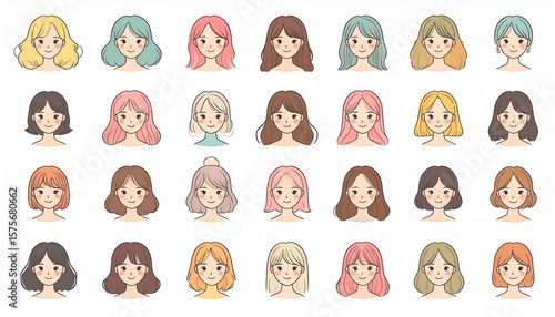 Obraz premium Cute girl avatars with various hairstyles