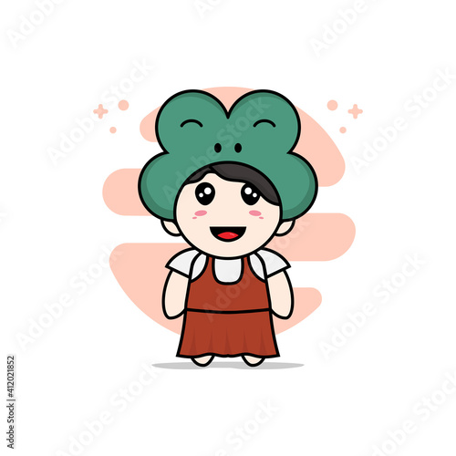 © Turn, Obraz premium Cute girl character wearing frog costume.