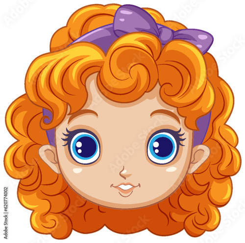 Fototapeta premium Cute Girl Head with Orange Curly Hair