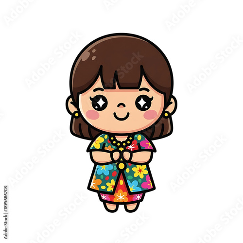 © tanganbelang, Fototapeta premium Cute Girl Sticker.
