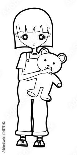 © kedsirin, Fototapeta premium cute girl vector in black line on a white background