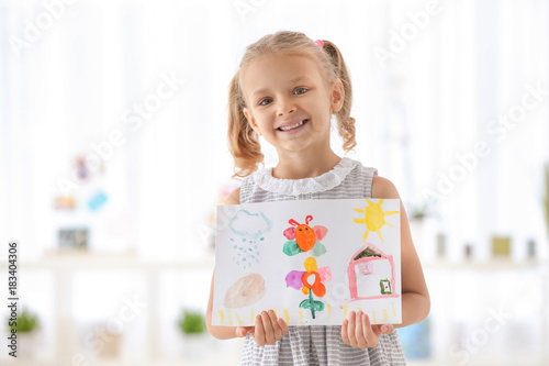 © Africa Studio, Fototapeta premium Cute girl with picture on blurred background