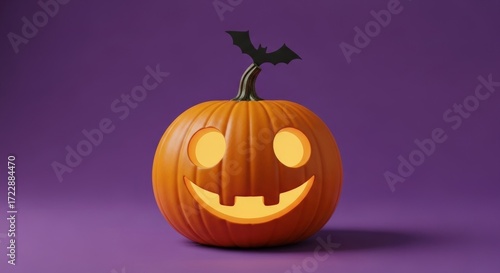 © Iqbal, Fototapeta premium Cute glowing jack-o'-lantern with a bat