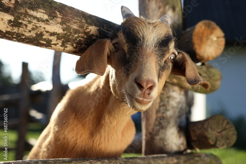© New Africa, Fototapeta premium Cute goat inside of paddock at farm