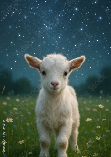 © Rawpixel.com, Obraz premium Cute goat under starry sky