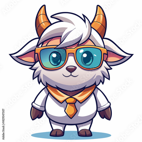 © setan cell, Fototapeta premium Cute goat wearing stylish glasses and a tie
