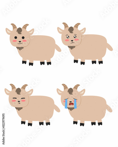 © zalsa, Obraz premium Cute goats with various emoticon farm animals set, eid Al adha