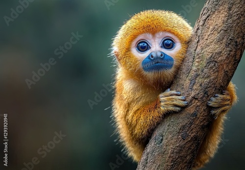 © S@photo, Obraz premium Cute Golden Monkey Peering from Tree with Adorable Expression