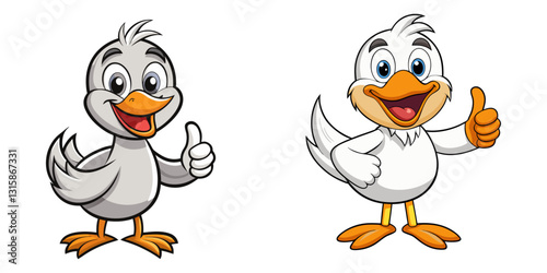 Obraz premium Cute Goose character giving a thumbs up with smile, showing approval on white background