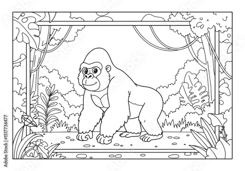 Naklejka premium Cute gorilla in jungle coloring page for kids and adults fun act