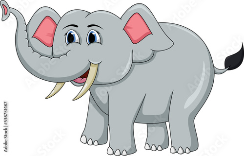 © bubululu, Fototapeta premium cute gray elephant lifts its trunk and smiles cartoon vector illustration
