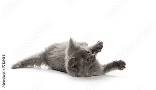 Obraz premium Cute gray kitten playing