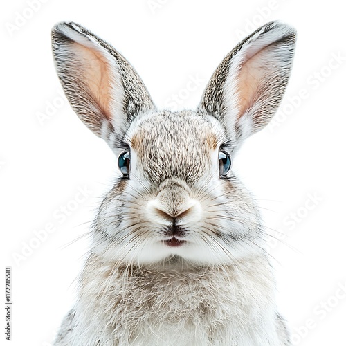 © ardanz, Obraz premium Cute gray rabbit portrait, studio shot, white background, Easter.
