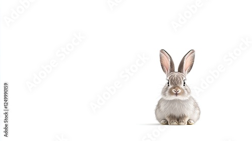 © Bene, Obraz premium Cute gray rabbit sitting against a plain white background, ideal for children's book illustrations