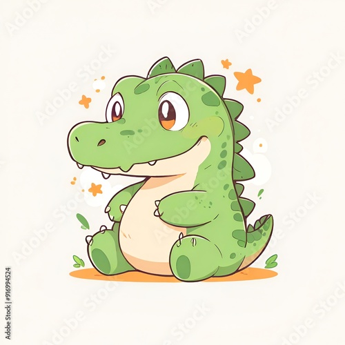 © SetCartoon, Naklejka premium Cute Green Alligator Illustration