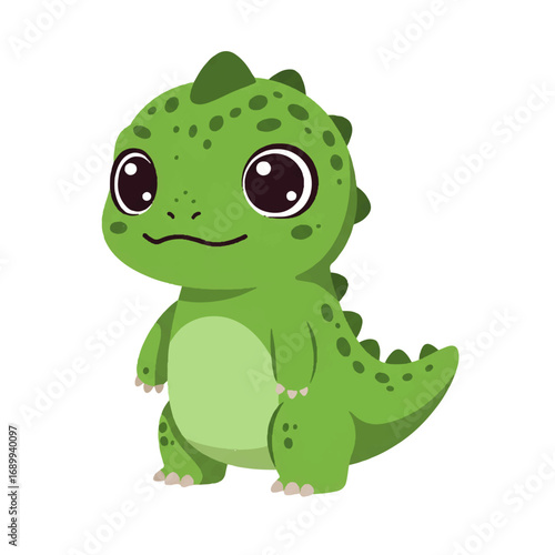 Obraz premium Cute Green Baby Dinosaur Cartoon Illustration.