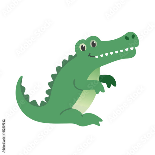 © Xihan, Naklejka premium Cute Green Cartoon Alligator on Black Background Illustration