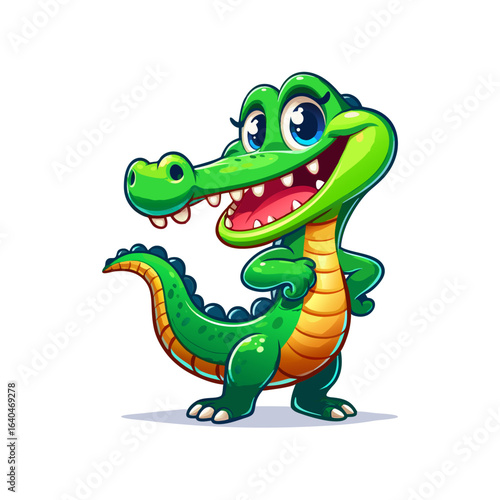 © Zains, Fototapeta premium Cute Green Cartoon Crocodile with Happy Expression on White Background