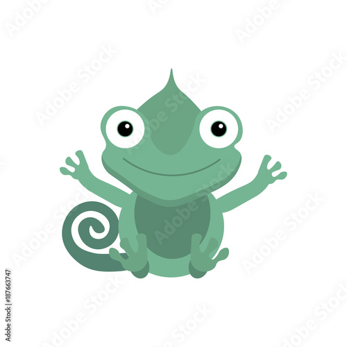 © Maria, Fototapeta premium Cute green chameleon sitting. Chameleon