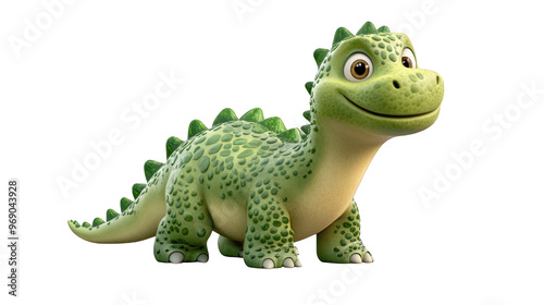 © Ndoomyim, Obraz premium Cute Green Dinosaur Cartoon Character Illustration
