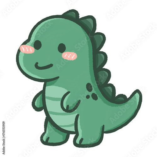 Obraz premium Cute Green Dinosaur Cartoon Illustration