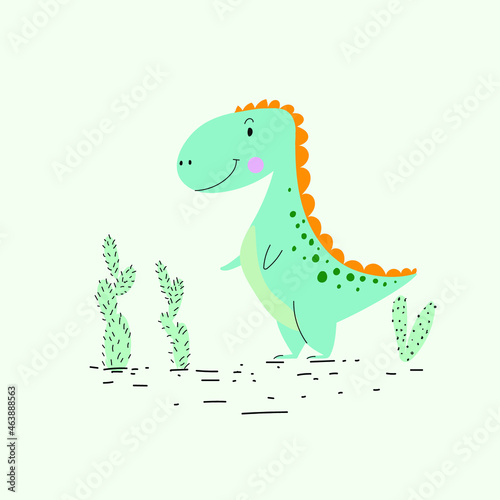 © Suryadi, Fototapeta premium Cute green dinosaur icon character vector illustration.