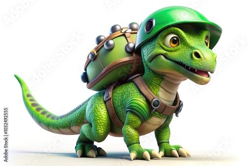 © PomPam, Naklejka premium Cute Green Dinosaur Urban Explorer Mascot Logo Design on White Background