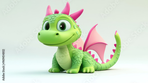 © warunthorn, Fototapeta premium Cute Green Dragon.