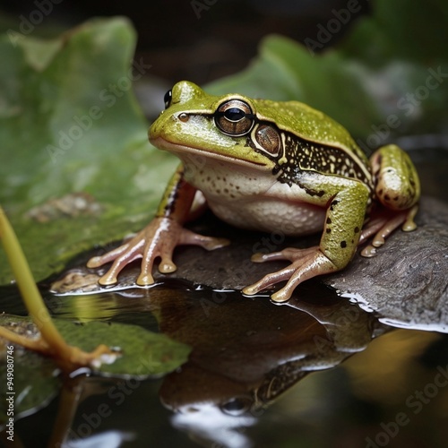 Fototapeta premium Cute green frog amphibian wildlife water Animal