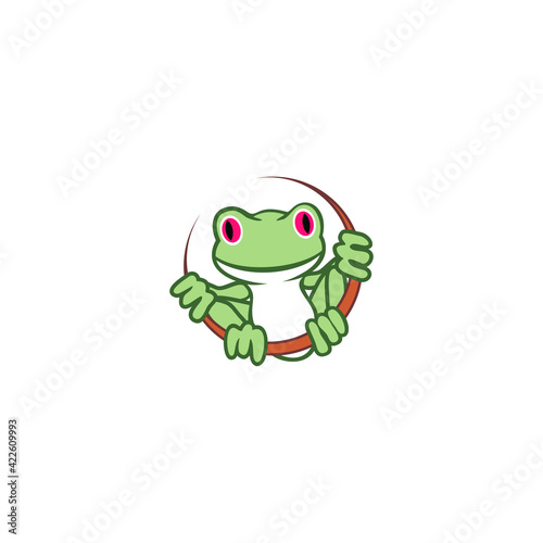 Obraz premium Cute green frog cartoon character icon logo isolated on white background