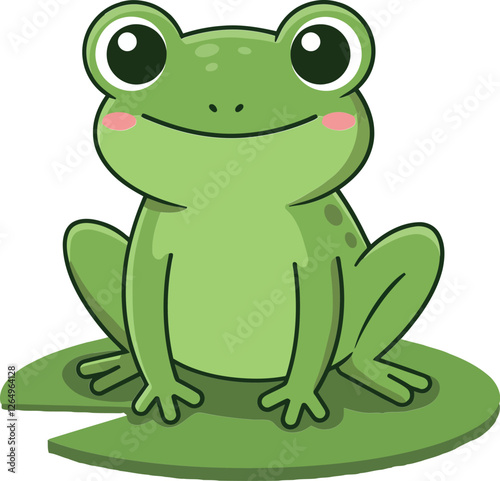 Obraz premium Cute green frog character in flat design style sitting on lily pad vector art