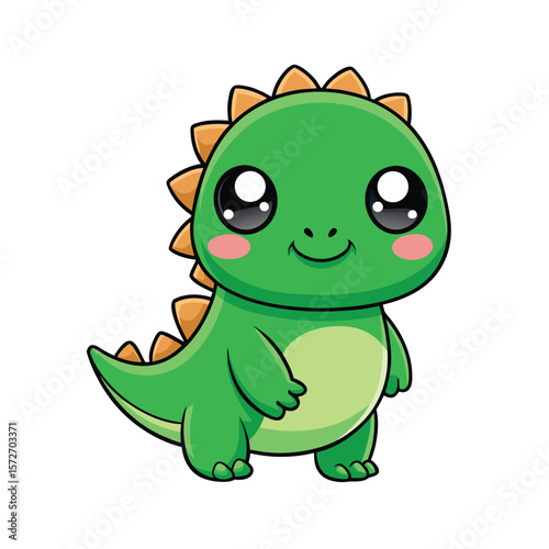 © HMDHasan, Fototapeta premium cute green kawaii dinosaur smiling with tiny arms