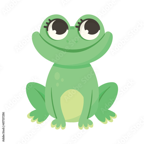 © Happypictures, Naklejka premium Cute Green Leaping Frog Character Sitting Vector Illustration