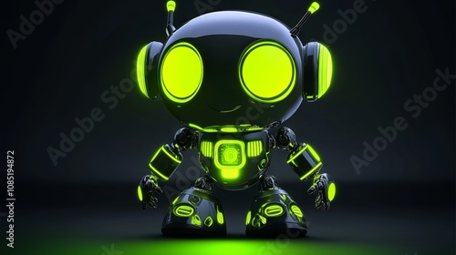 © Taisiia, Fototapeta premium Cute green neon cartoon android robot