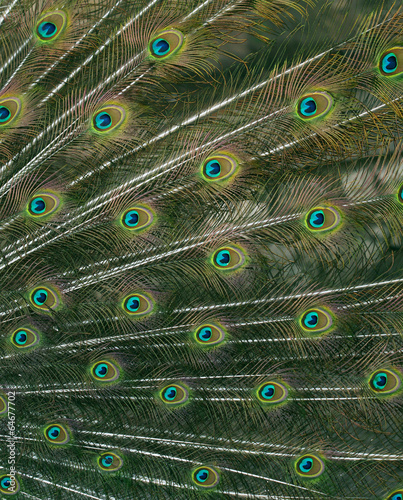 © northernland, Fototapeta premium Cute green peacock feather close up