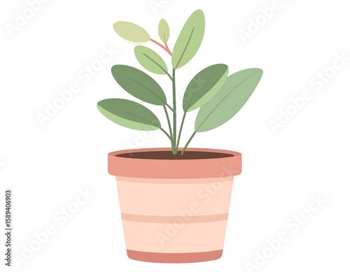 Obraz premium Cute Green Plant In A Minimal Ceramic Pot Isolated On White Background Room Decor Element