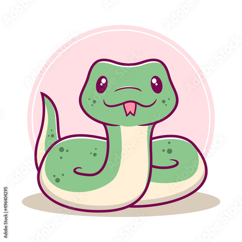 Fototapeta premium Cute green snake cartoon vector illustration