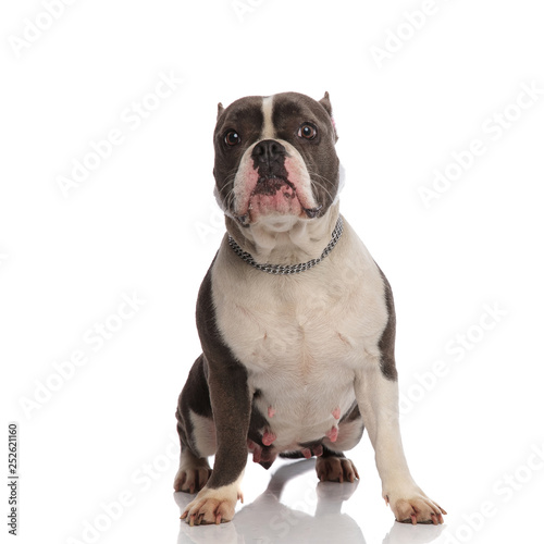 © Viorel Sima, Obraz premium cute grey and white american bully lying and stretching