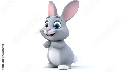 © Maryanto, Fototapeta premium Cute grey bunny, happy pose, white background, Easter