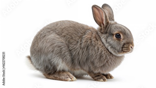 © MetaPixel, Fototapeta premium Cute grey bunny with floppy ears standing alone on white surface