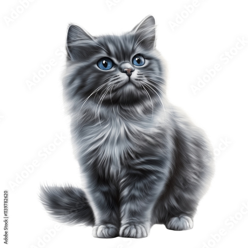 © Tatiana, Obraz premium Cute grey cat isolated on transparent background. PNG. Generated AI