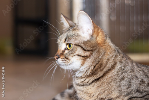 Naklejka premium Cute grey cat lying on the floor